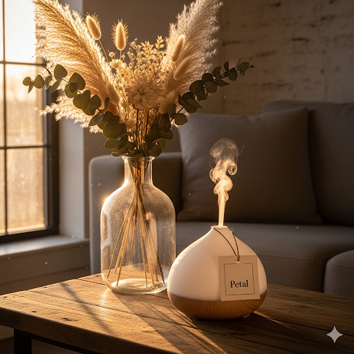 The Petal Ultrasonic Essential Oil Diffuser combines sleek design with therapeutic benefits. Crafted from premium ceramic with a smooth matte finish, this diffuser uses ultrasonic technology to produce a fine, cool mist that evenly disperses essential oils. Its built-in LED ambient light offers soft illumination, creating a calming atmosphere perfect for relaxation, meditation, or bedtime routines. Compact yet powerful, the diffuser not only elevates your wellness rituals but also enhances your home décor with a minimalist aesthetic. Designed to suit modern, Scandinavian, and Japandi interiors, the Petal Diffuser is where functionality meets timeless beauty.